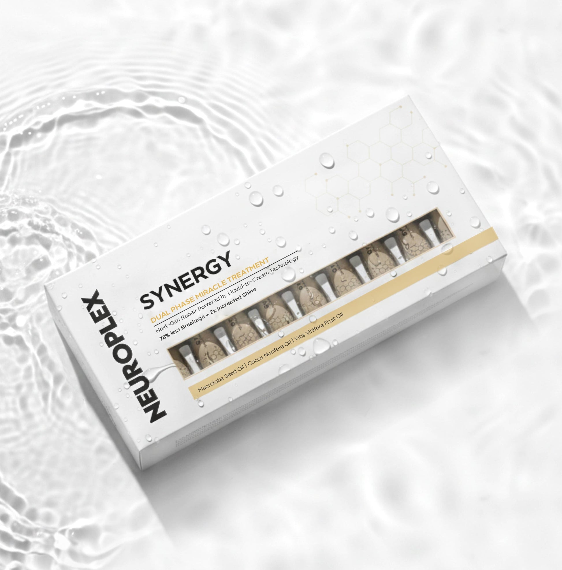Synergy Dual Phase Miracle Treatment (9×20ml) transforms from a light liquid to a rich cream for deep repair. It restores softness, improves elasticity, and strengthens hair with every use.